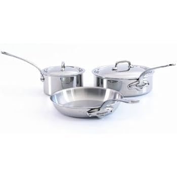 3 Mauviel M'Cook Stainless Steel Induction Saucepans, made in France. The M'Cook collection comes with a shiny stainless steel finish. This set includes 3 saucepans, measuring 6.3 inch (16cm), 7.1 inch (18cm) and 7.9 inch (20cm). ... Access Content